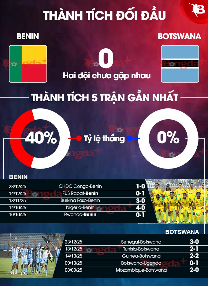 Benin không tấn công quá sắc sảo, nhưng họ phòng ngự chắc chắn hơn và sẽ đối đầu với một Botswana đang gặp khó khăn trong việc giữ vững đội hình. Trong một bảng đấu mà hiệu số bàn thắng bại có thể tạo nên sự khác biệt, Benin nhiều khả năng sẽ kiểm soát trận đấu hơn là cố gắng giành chiến thắng với cách biệt lớn.