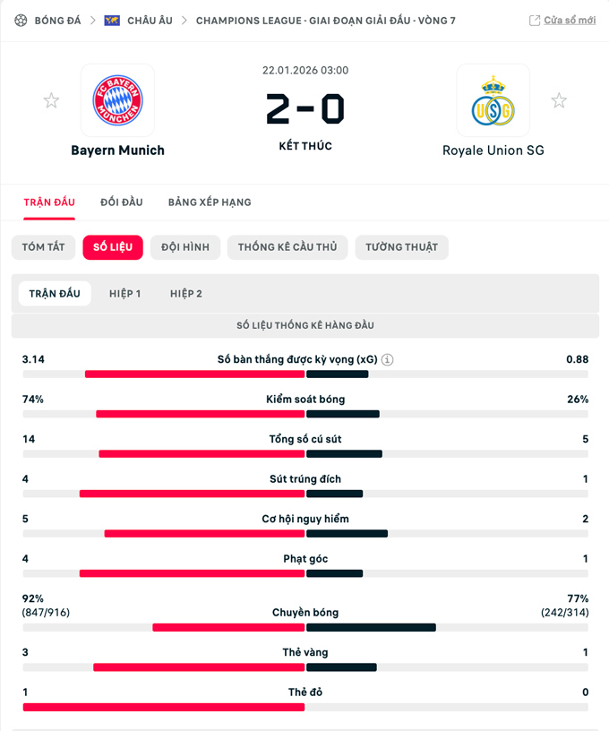 Chiến thắng 2-0 không chỉ giúp Bayern giành thêm 3 điểm quan trọng để chính thức có vé vào vòng 1/8 mà còn đánh dấu trận thắng thứ 250 của họ tại Champions League, cột mốc lịch sử khẳng định vị thế của Hùm xám ở đấu trường châu Âu.