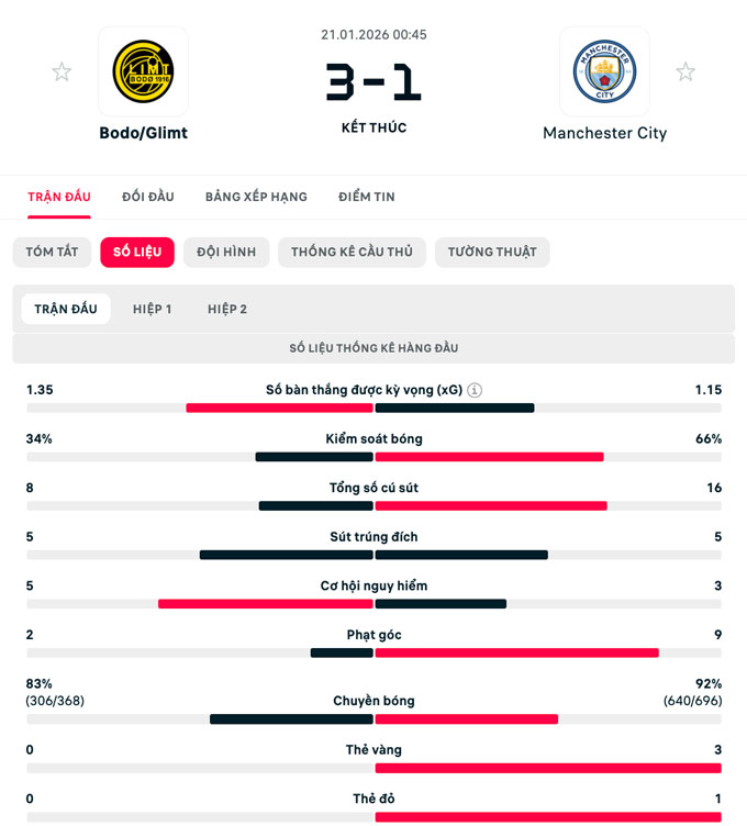 Khoảng thời gian còn lại là không đủ để Man City ngược dòng, qua đó chấp nhận thất bại 1-3 chung cuộc ngay trên đất Na Uy.