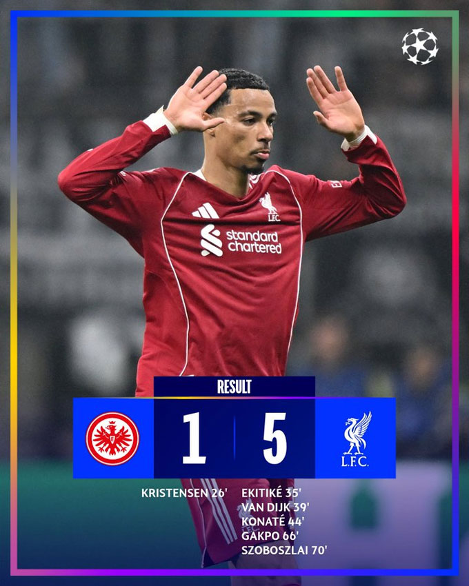 Liverpool: Ekitike (35'), Van Dijk (39'), Konate (44'), Gakpo (66'), Szoboszlai (70')