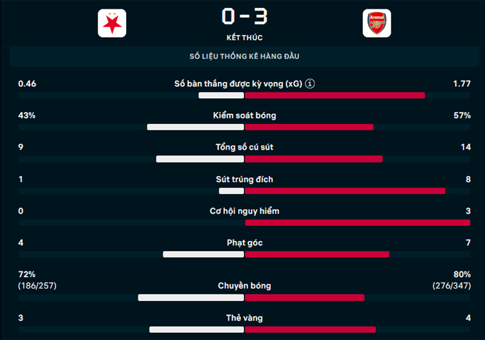 Đến phút 68, cầu thủ người Tây Ban Nha hoàn tất cú đúp, nâng tỷ số lên 3-0 cho Arsenal. Đó cũng là kết quả cuối cùng của màn so tài này. Như vậy, Arsenal đã giành 12 điểm tuyệt đối sau 4 lượt trận vòng phân hạng Champions League.