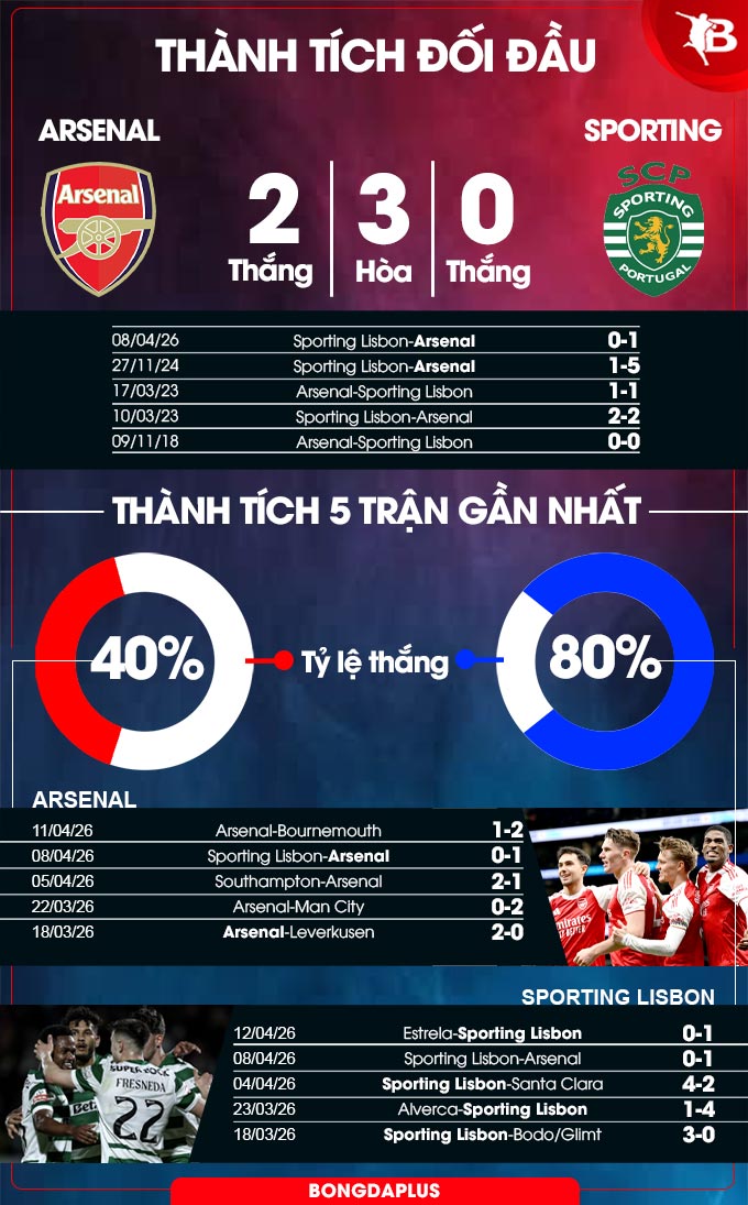 Với Sporting Lisbon, cơ hội vô địch Bồ Đào Nha gần như không còn nên tiến sâu tại Champions League sẽ là mục tiêu của thầy trò HLV Rui Borges, những người chắc chắn sẽ nhập cuộc với quyết tâm cực lớn nhằm lật ngược thế cờ, giống như cách họ đã làm ở vòng 1/8 trước Bodo Glimt. Phong độ của đại diện Bồ Đào Nha đang khá tốt với 4/5 trận thắng gần đây. Mặc dù vậy, tạo địa chấn ở Emirates vẫn là điều gì đó phi thực tế lúc này.