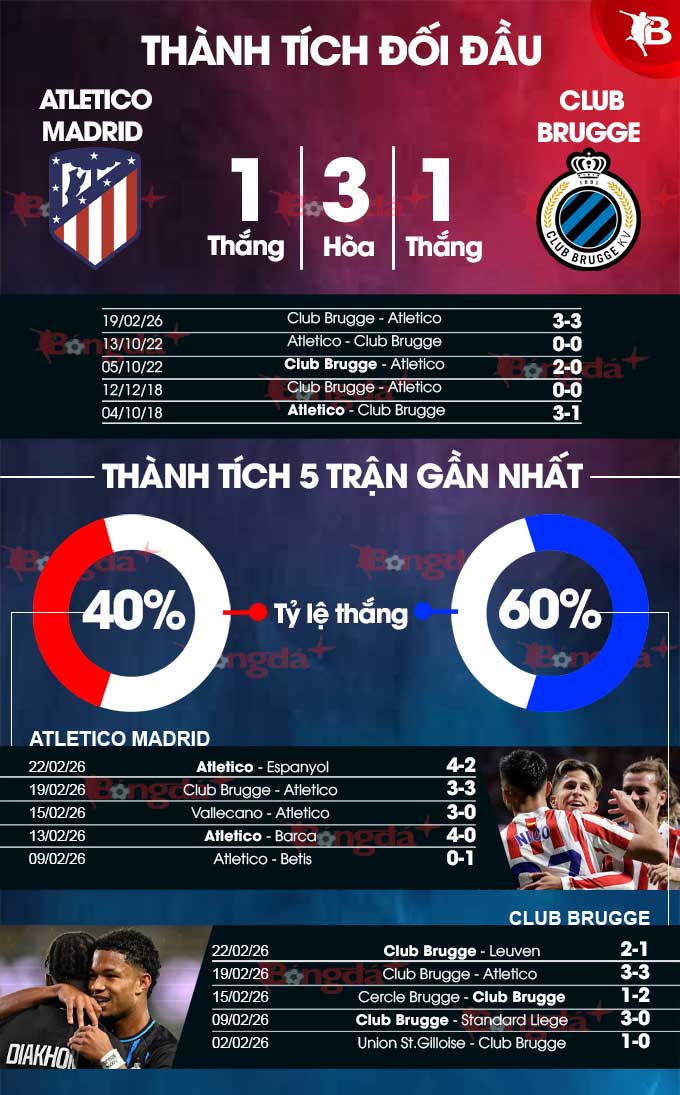 Nhìn chung, Atletico có nhiều cơ hội giành chiến thắng ở trận đấu này để sở hữu tấm vé đi tiếp tại Champions League 2025/26. Tuy nhiên, đây sẽ là trận đấu không hề dễ dàng đối với thầy trò ông Simeone. Club Brugge cũng đang có phong độ tốt khi họ thắng 6/8 trận đấu trở lại đây, còn lại hòa 1 và thua 1.