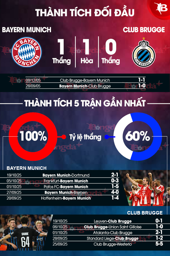 Phân tích dữ liệu chuyên sâu Bayern Munich vs Club Brugge