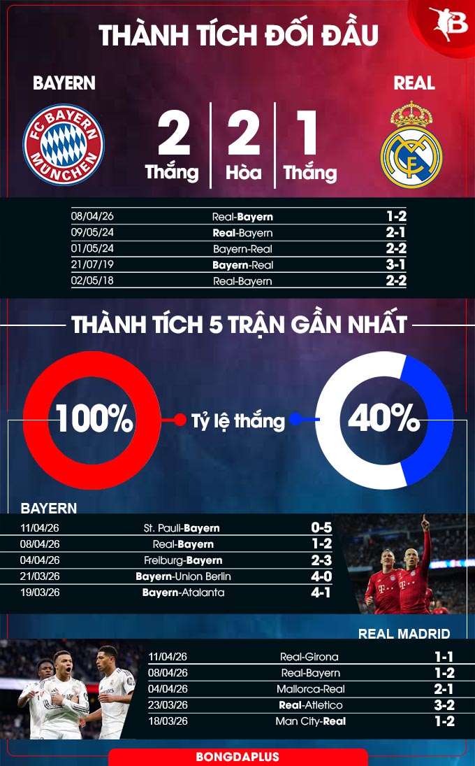 BONGDAPLUS dự đoán tỷ số trận Bayern vs Real