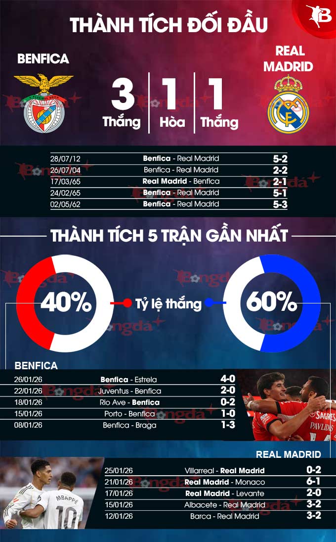 Phân tích dữ liệu chuyên sâu Benfica vs Real Madrid