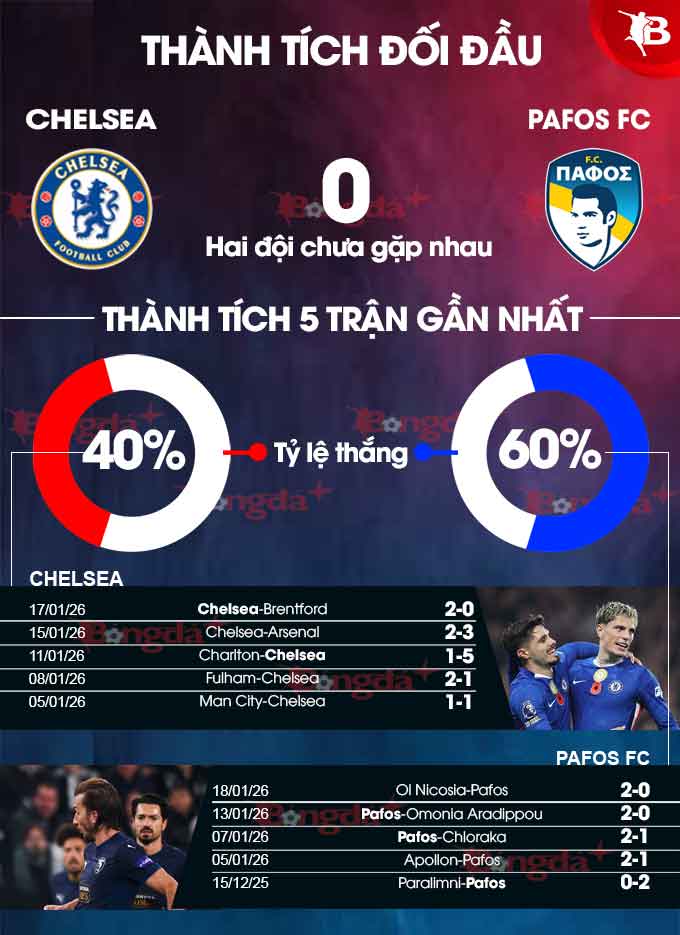 Trong khi đó, hành trình của Pafos được định hình bởi sự kiên cường và khả năng tổ chức phòng ngự. Trận thua 0-2 gần đây trước Olympiakos đã bộc lộ những hạn chế trong việc tạo ra cơ hội rõ ràng và chuyển hóa sức ép thành bàn thắng, trong khi các chiến thắng 2-0 trước Omonia Aradippou và Paralimni cho thấy sự bền bỉ trước những đối thủ yếu hơn. Tuy nhiên, số cú sút và hiệu suất tấn công tổng thể của họ vẫn còn hạn chế, điều này có thể gây khó khăn khi đối đầu với lối chơi pressing quyết liệt của Chelsea.