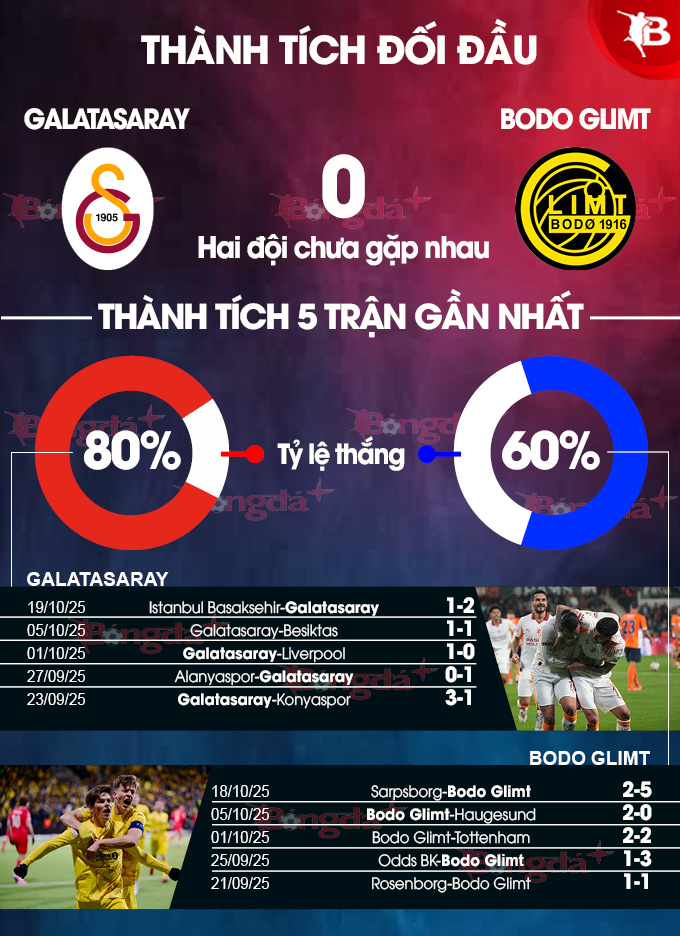 Hiện tại, phong độ của Galatasaray vs Bodo Glimt đều đang rất ổn ở thời gian này khi cùng bất bại trong 5 trận nhất. Tuy nhiên, Galatasaray lại có lợi thế sân nhà và chưa thua tại đây kể từ khi mùa giải mới khởi tranh. Trong khi đó, Bodo Glimt cũng sở hữu thành tích tương tự ở sân khách.