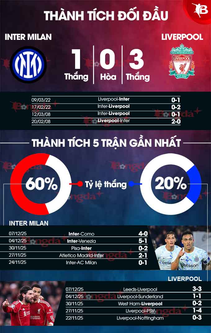 Phân tích phong độ Inter Milan vs Liverpool