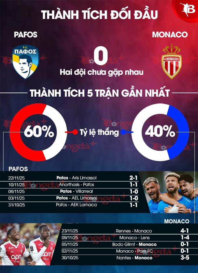Monaco là đội bóng có thực lực, với nhiều cầu thủ chất lượng hơn hẳn so với đội hình của Pafos. Đội bóng Công quốc cũng đang chơi không tệ ở Champions League trong thời gian gần đây. Cụ thể, họ thắng 1, hòa 2. Nên nhớ rằng, 2 trận hòa của Monaco đều trước các đối thủ mạnh của nước Anh gồm Man City và Tottenham.