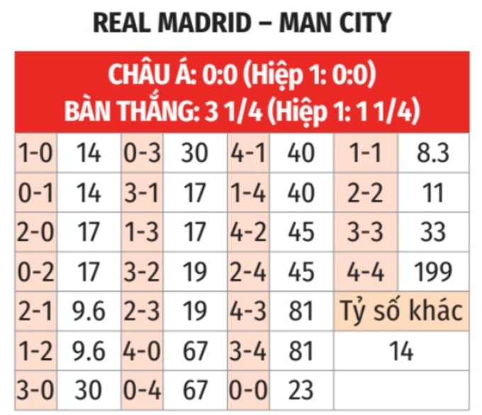 Man City có nhiều cơ hội giành chiến thắng ngay ở Bernabeu. Hiệp 1 của trận đấu này có khả năng sẽ có nhiều phạt góc.