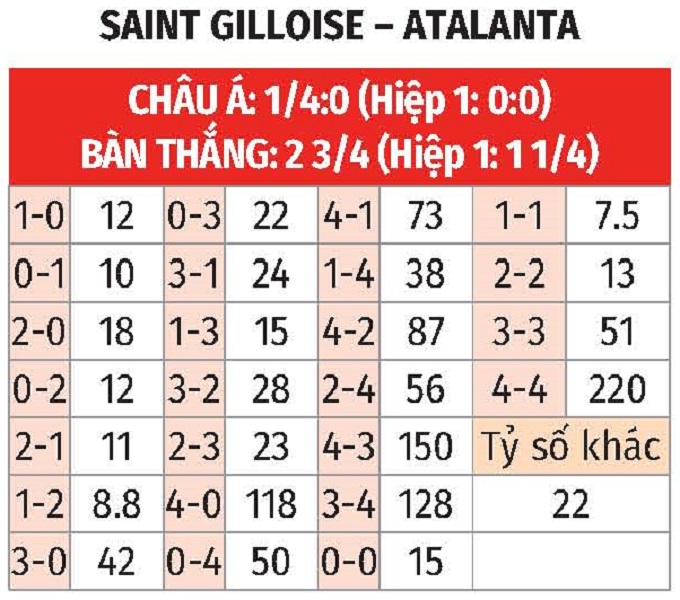 - Ít bàn thắng: 7 trận liên tiếp gần đây của Union SG đều có không quá 2 bàn thắng được ghi, trong đó hàng thủ của họ có 5 trận giữ sạch lưới. Với Atalanta, 6/8 trận vừa qua của đội khách cũng có tối đa 2 pha làm bàn.