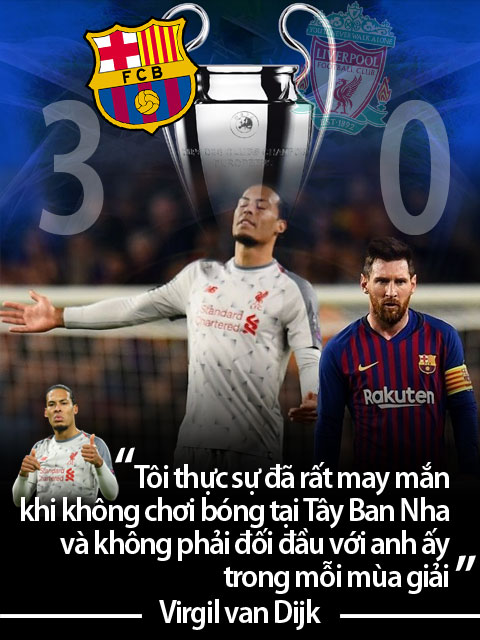 Nói về màn đối đầu với Messi, Van Dijk - tân chủ nhân danh hiệu Cầu thủ xuất sắc nhất năm của Ngoại hạng Anh đã phải thừa nhận một sự thật phũ phàng: "Khi bạn đối đầu Messi mà anh ấy lại đang có phong độ cao nhất thì mọi nỗ lực của bạn đều trở nên vô nghĩa.
