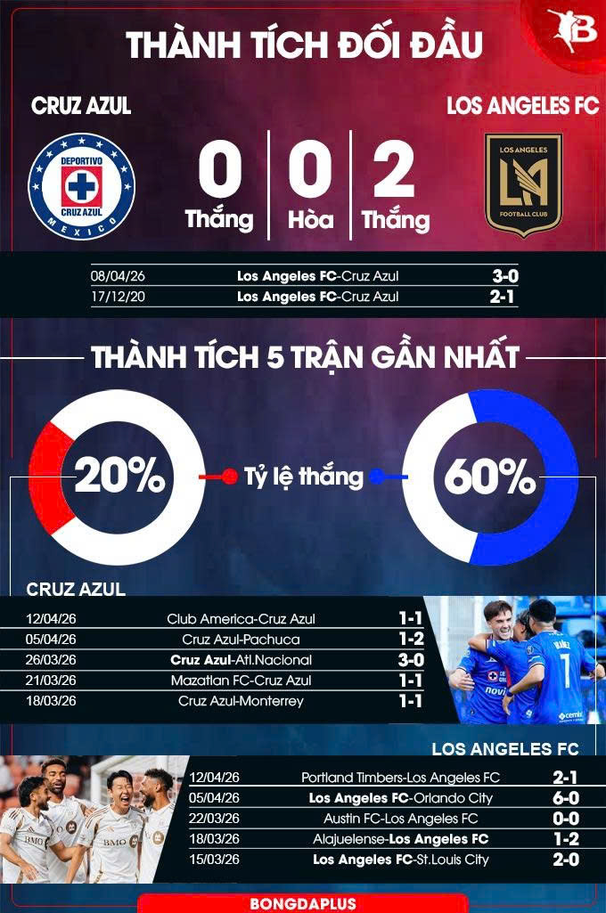 Điều đáng nói là ở 2 lần gặp nhau trước đây, Los Angeles đều thắng Cruz Azul. Với đội hình kinh nghiệm hơn đối thủ, đặc biệt là sở hữu ngôi sao Son Heung-min. Nhiều khả năng, Los Angeles FC sẽ lại giành chiến thắng để có vé đi tiếp.