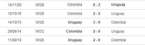 + 5 trận đối đầu gần đây Uruguay vs Colombia