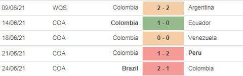 - Theo kèo châu Á, Colombia không thắng 3 trận gần nhất, trong đó có 2 thất bại