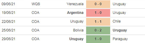 - 7 trận liên tiếp gần đây của Uruguay đều có không quá 2 bàn thắng được ghi