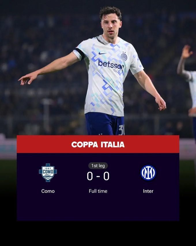 Trong những phút sau đó, Inter đánh mất thế trận trong khi Como càng chơi càng hay. Họ liên tục dồn ép đối thủ về vòng cấm. Đáng tiếc là đội chủ nhà không thể tìm được bàn thắng trong hiệp thi đấu đầu tiên.