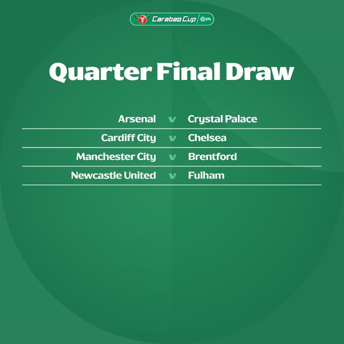 Cùng phải gặp những đối thủ tới từ Ngoại hạng Anh như Arsenal còn có Man City và Newcastle. ĐKVĐ Newcastle sẽ gặp thử thách mang tên Fulham còn Man City đối đầu với Brentford.