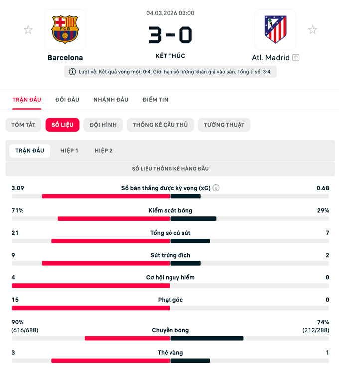 Chỉ cần ghi thêm 1 bàn thắng nữa là Barca sẽ cân bằng tỷ số sau hai lượt trận. Nhưng dù có hơn 20 phút còn lại, họ vẫn bất lực trong việc phá lưới của Atletico.