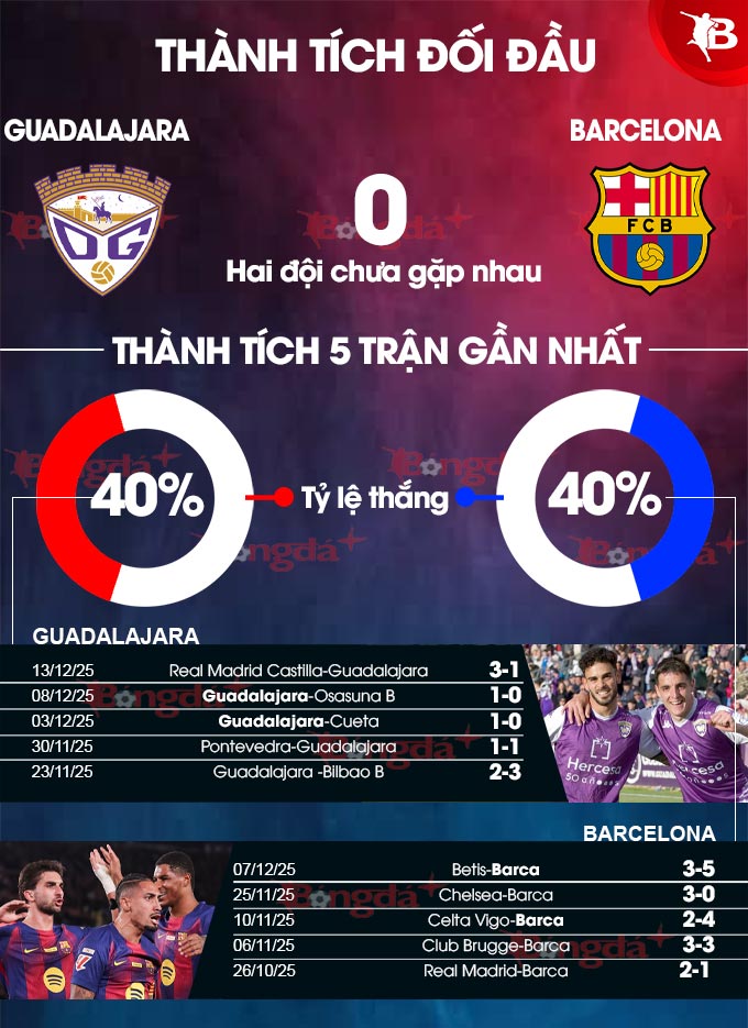 Barca đang có phong độ tốt khi thắng liền 5 trận gần nhất. Đây là lần đầu tiên trong lịch sử Barca chạm trán Guadalajara, đội bóng đang được dẫn dắt bởi HLV Pere Marti, người từng làm việc ở Villarreal, Malaga và Elche. Hiện tại, Guadalajara đang thi đấu ở giải Hạng Ba Tây Ban Nha, tạm đứng thứ 17 với 17 điểm sau 15 trận đã đấu. Trên sân nhà, Guadalajara cũng chơi dở tệ khi chỉ thắng 2 trong 8 trận gần nhất. Nhìn chung, Guadalajara là một "mồi ngon" dành cho các ngôi sao bên phía Barca tập dứt điểm và có thêm hưng phấn.