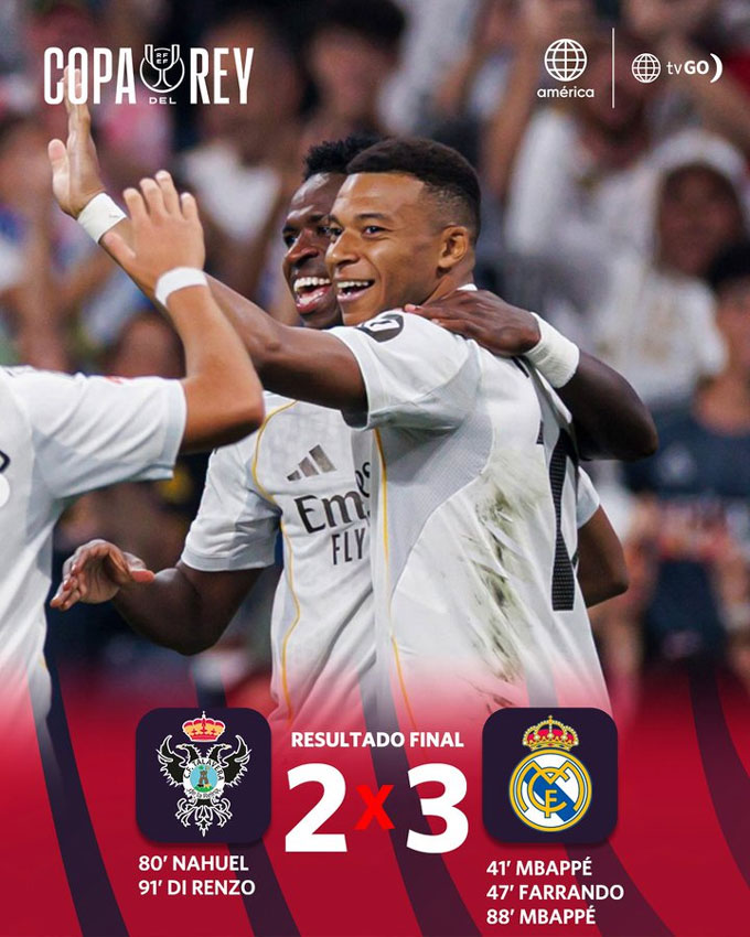 Tới phút 90+1, Talavera lại ghi bàn rút ngắn cách biệt xuống còn 2-3 và khiến Real toát mồ hôi trong những phút cuối. Rất may là họ vẫn bảo toàn được tỷ số và giành quyền vào vòng 1/8.