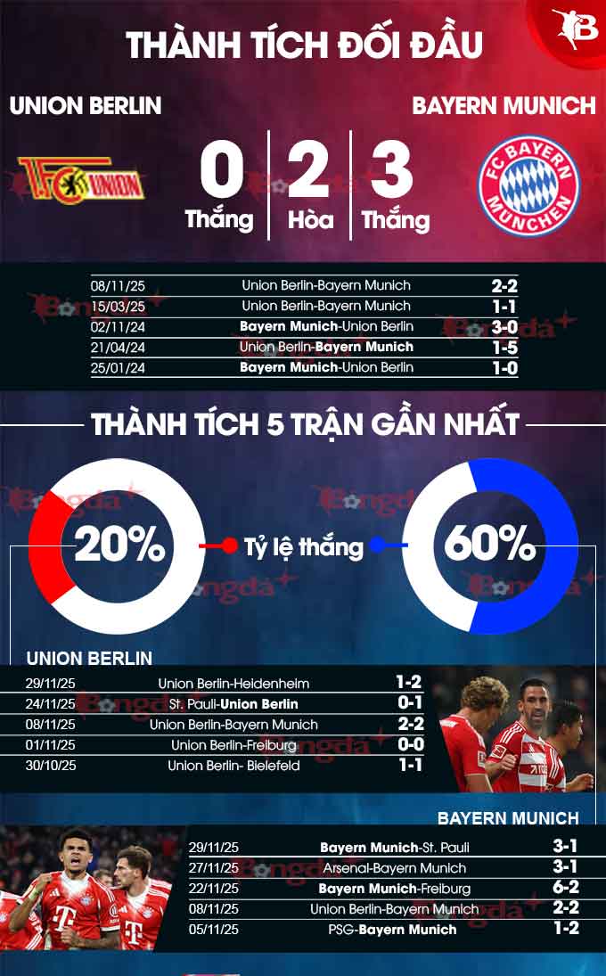 Phân tích dữ liệu chuyên sâu Union Berlin vs Bayern Munich