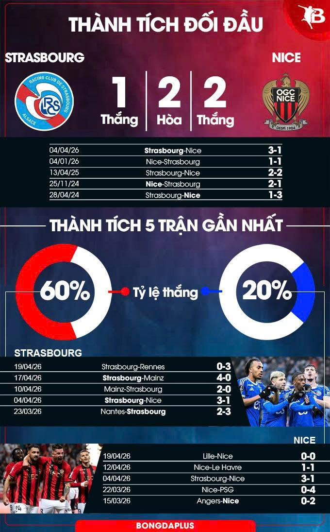 BONGDAPLUS dự đoán tỉ số Strasbourg vs Nice