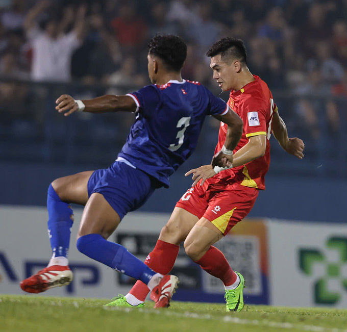 Tiến Anh đá phạt, treo bóng vào trong cho Duy Mạnh đánh đầu. Cú dứt điểm của đội trưởng Việt Nam trúng đầu cầu thủ Nepal nên giảm sức “sát thương”.