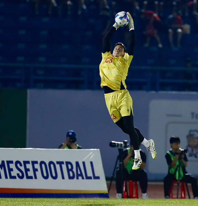 Văn Lâm mắc sai lầm. Xuân Mạnh chuyền về cho Văn Lâm nhưng anh sút hụt. Duy Mạnh phải rất vất vả cứu nguy.