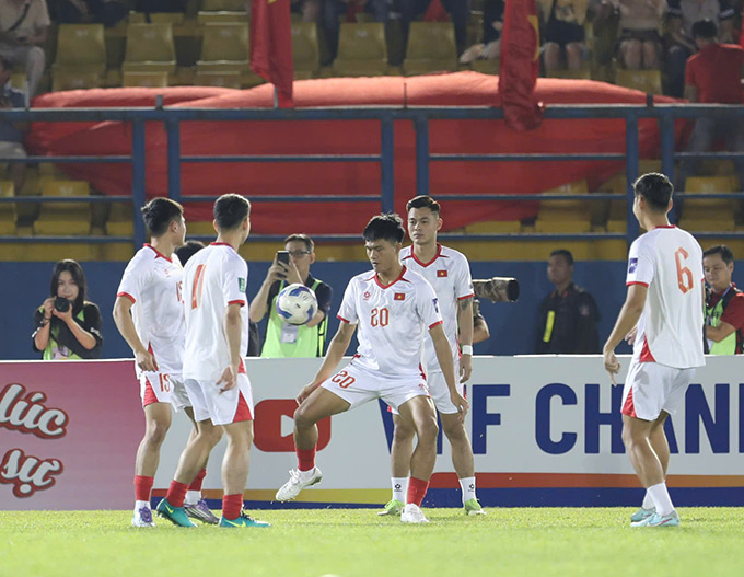 Việt Nam thay 2 người. Gia Hưng và Thanh Nhàn vào thay Tuấn Hải, Hai Long. Nepal thay 2 người. Rohan Karki, Jung Karki rời sân. Kumar Lama và Subash Bam vào sân. Ảnh: Anh Khoa