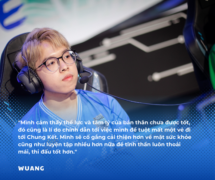 Hạt giống số 1 Wuang thi đấu bằng cả tâm huyết và tài năng, ngạo nghễ giành vị trí Top 6 Asian Cup 2023. Dù chưa thể tiến vào chung kết như dự định, Wuang được cộng đồng châu Á công nhận thực lực và nể phục dáng vẻ ngoan cường chiến đấu. Giáp mặt với đương kim vô địch châu Á 2022 – RSG.Feng, Wuang thi đấu không hề nao núng, tỏ rõ kỹ năng đỉnh cao, cho đối thủ biết rằng đường đến chung kết sẽ chẳng hề dễ dàng.