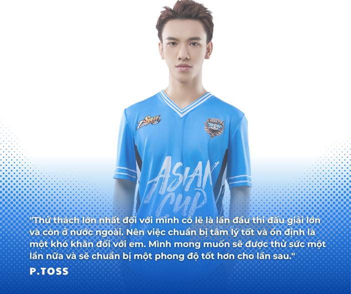 Asian Cup 2023 đánh dấu sự trở lại đường đua chuyên nghiệp của P.Toss sau 4 năm vắng bóng. Từng là cái tên oanh tạc những ván đua tốc độ đời đầu, P.Toss không hề kém cạnh bất kỳ tay đua cự phách nào ở lần đầu tiên thi đấu quốc tế này. Phải nói rằng P.Toss có khả năng nắm bắt và xử lý tình huống vô cùng nhanh nhạy, khéo léo kiến tạo giúp đồng đội thuận lợi về đích. Hành trình tại Asian Cup 2023 không quá dài nhưng P.Toss đã có những phút giây tỏa sáng nhất định, khơi dậy sự tự tin và tiềm năng bấy lâu của mình.