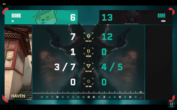Sau khi đổi bên, Bonkers thắng vòng lục nhưng để thua ngay sau đó. Lúc này, BOOM đã tận dụng cơ hội thành công và giành chiến thắng bản đồ Haven với tỷ số 13-6.