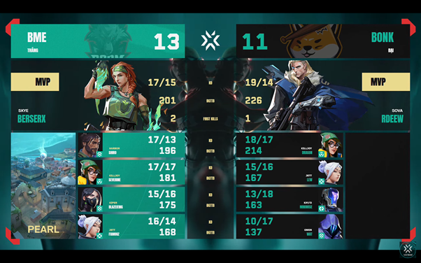 BOOM tiếp tục khởi đầu tốt tại bản đồ Pearl khi dẫn trước 5-2. Tuy nhiên, Bonkers bất ngờ thắng 5 vòng để dẫn ngược 7-5. Trong lượt thi đấu tiếp theo, BOOM nhanh chóng gỡ hòa và liên tục tạo ra khoảng cách.