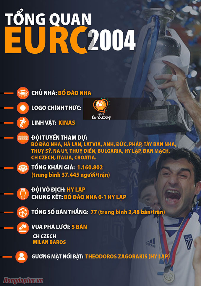 Trận chung kết là đỉnh điểm của câu chuyện cổ tích ấy. Bồ Đào Nha, với lợi thế sân nhà và dàn cầu thủ kỹ thuật, tràn lên tấn công. Nhưng Hy Lạp vẫn chơi phòng ngự kỷ luật, kiên nhẫn chờ đợi. Và rồi khoảnh khắc quyết định đến từ một tình huống rất “Hy Lạp” khi Angelos Charisteas bật cao đánh đầu từ quả phạt góc của Basinas, ghi bàn thắng duy nhất của trận đấu. Không phải một siêu phẩm, không phải một pha phối hợp đẹp mắt, chỉ là sức mạnh, sự quyết đoán và hiệu quả. Nhưng chừng đó là đủ để họ lên ngôi vô địch.