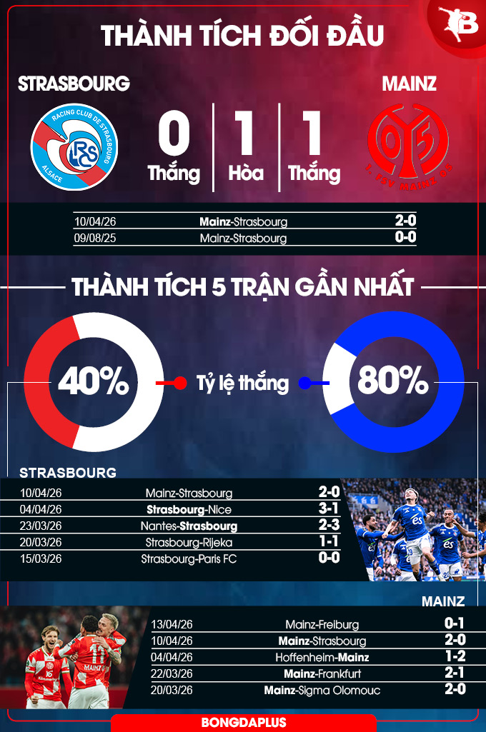 Rõ ràng, lợi thế sân nhà (bất bại 7 trận gần nhất, bao gồm 4 chiến thắng và 3 trận hòa) và áp lực tấn công sẽ giúp Strasbourg nhập cuộc mạnh mẽ ngay từ đầu, nhưng điều đó có thể mở ra cơ hội cho một Mainz chơi hiệu quả ở chiều ngược lại.