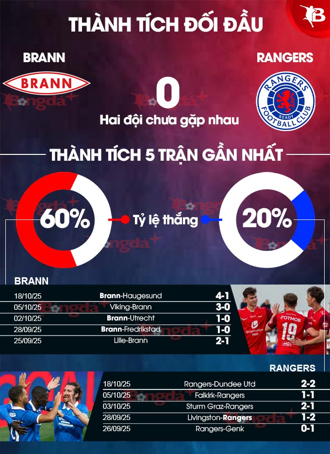 Bước vào lượt trận thứ 3, Brann đang có cơ hội nâng cao thành tích và cải thiện vị trí, khi được chơi trên sân nhà và tiếp đón Rangers, ông lớn đang sa cơ của bóng đá Scotland. Đội bóng thủ đô chỉ giành được 5 chiến thắng trong số 18 trận đấu chính thức từ đầu mùa giải mới 2025/26, và điều đó làm giọt nước tràn ly khiến HLV Russell Martin bị sa thải trước đợt tập trung quốc tế tháng 10.