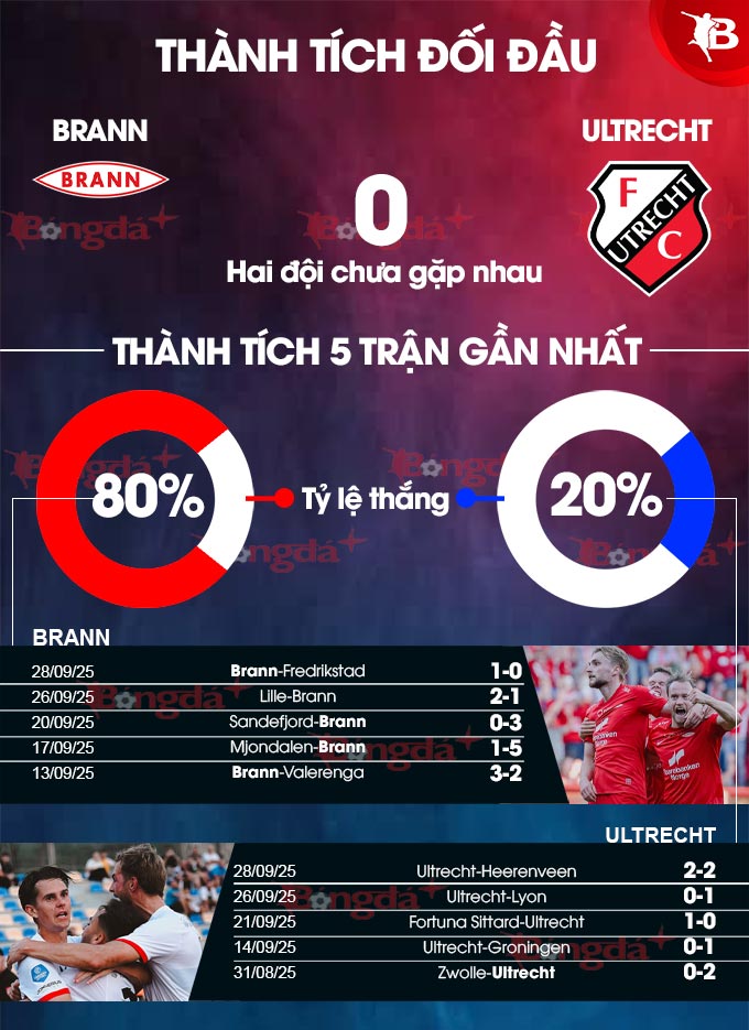 Lúc này, phong độ của Brann vs Ultrecht có sự chênh lệch. Trong khi Brann thắng 4/5 trận gần nhất thì Utrecht chỉ thắng 1/5 trận vừa xong.