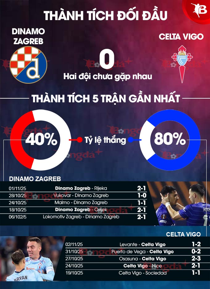 Trên sân nhà, Dinamo Zagreb toàn thắng 4 trận vừa xong. Còn với Celta Vigo, họ cũng có 3 trận liền toàn thắng ở sân khách. Vấn đề nằm ở chỗ, Celta Vigo có thực lực và đội hình mạnh hơn đối thủ. Sẽ không ngạc nhiên nếu đại diện của La Liga có niềm vui.