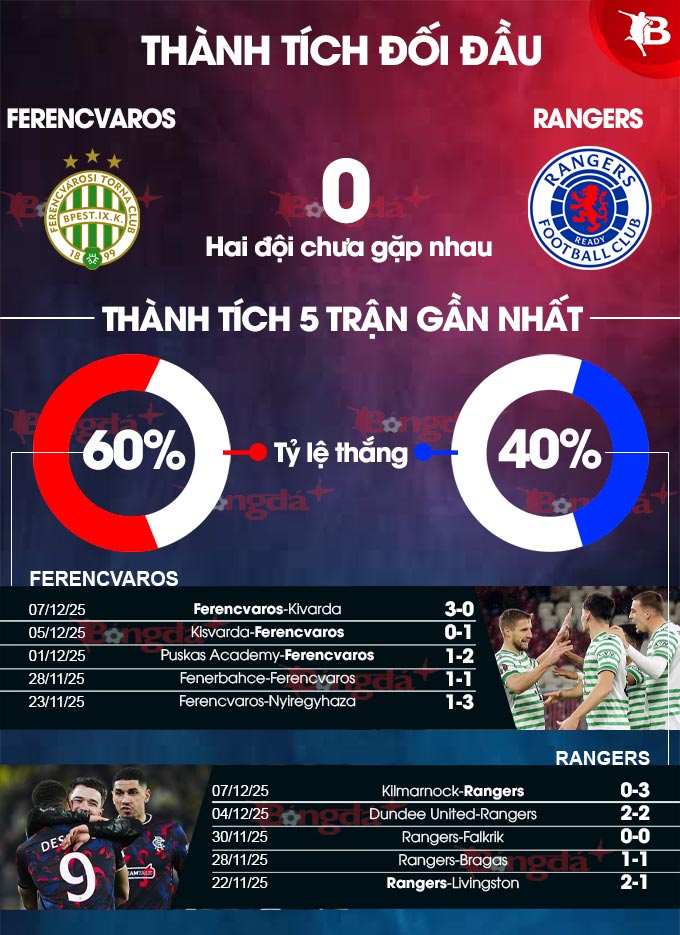 Vào cuối tuần trước, cả Ferencvaros và Rangers đều giành chiến thắng với cùng tỷ số 3-0 ở giải trong nước. Bây giờ, cả hai đội sẽ đối mặt ở vòng phân hạng Europa League 2025/26.