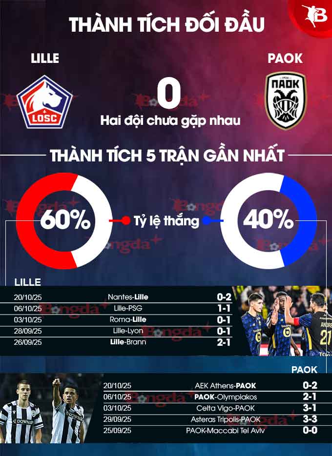 BONGDAPLUS dự đoán tỷ số trận Lille vs PAOK