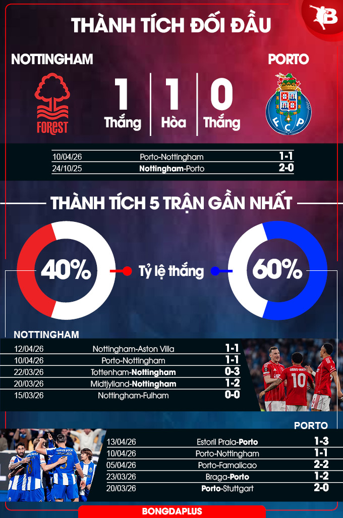 Tính riêng tại Europa League, Porto bất bại ở cả 5 trận trong năm 2026 (3 thắng, 2 hòa). Ngoài ra, họ cũng hành quân đến Nottingham với chuỗi 4 trận bất bại trên sân đối phương (3 thắng, 1 hòa). Ngoài ra, trên sân đối phương tại sân chơi danh giá thứ hai châu Âu mùa này, Porto thắng 2, hòa 2, chỉ thua 1.