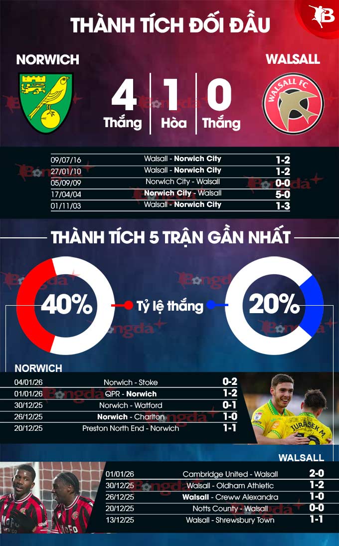 Phân tích phong độ Norwich vs Walsall