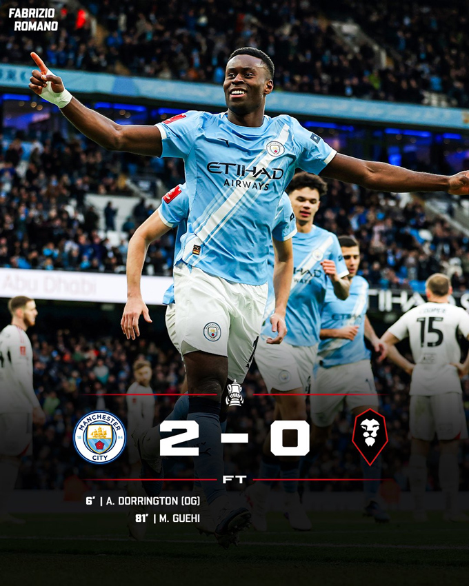 Man City tiếp đón Salford trên sân nhà ở vòng 4 FA Cup 2025/26. HLV Pep Guardiola tung ra đội hình xen lẫn giữa các trụ cột và một số cầu thủ trẻ. Mặc dù vậy, đội chủ nhà vẫn dễ dàng chiếm lĩnh thế trận và sớm có bàn mở tỉ số. Phút thứ 6, Ait Nouri căng ngang vào cho Marmoush nhưng bóng lại đập chân Dorrington, đổi hướng và bay vào lưới.
