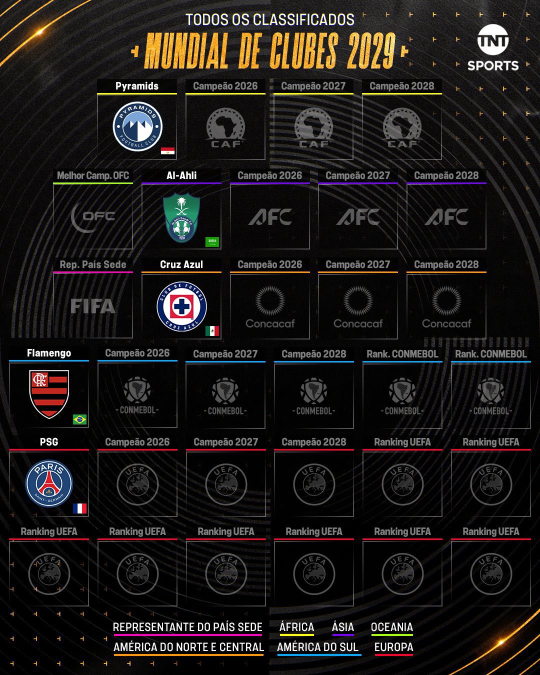 Với chức vô địch AFC Champions League 2024/25, Al Ahli (Saudi Arabia) sẽ là đại diện châu Á đầu tiên dự giải đấu năm 2029. Hôm 30/11, Flamengo đánh bại Palmeiras 1-0 ở chung kết Copa Libertadores 2025 trên sân Monumental, để trở thành đại diện đầu tiên của Nam Mỹ đến với giải đấu trên sau 4 năm nữa.