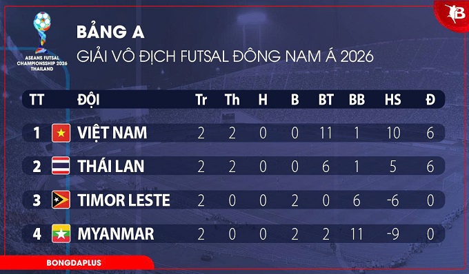 Đã không có bất ngờ nào xảy ra ở vòng bảng của giải futsal Đông Nam Á 2026 khi các đội mạnh đều đã giành chiến thắng và sớm vào bán kết. Ở bảng A, Thái Lan và ĐT futsal Việt Nam đã giành vé. Tại bảng B, Australia và Indonesia đã cầm 2 suất đi tiếp. Vì thế, cuộc đối đầu giữa các đội ở lượt trận cuối cùng sẽ có ý nghĩa quyết định đến ngôi đầu.