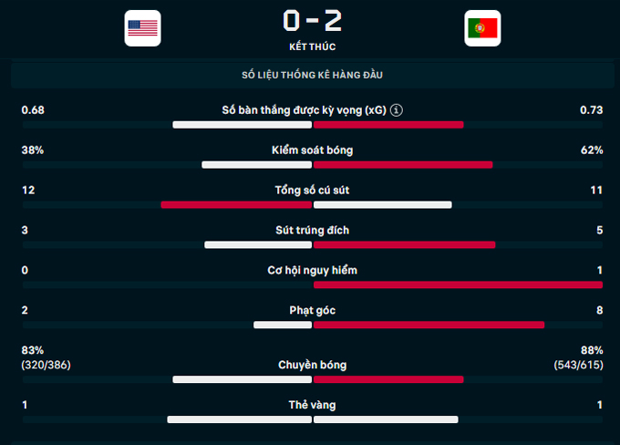 Trong khoảng thời gian còn lại, nhịp độ được giảm xuống khi Bồ Đào Nha chủ động cầm bóng. Chiều ngược lại, Mỹ tỏ ra bế tắc tột độ và chấp nhận bại trận với tỷ số 0-2 để rồi nối dài thành tích không thể thắng các đối thủ châu Âu kể từ năm 2021.