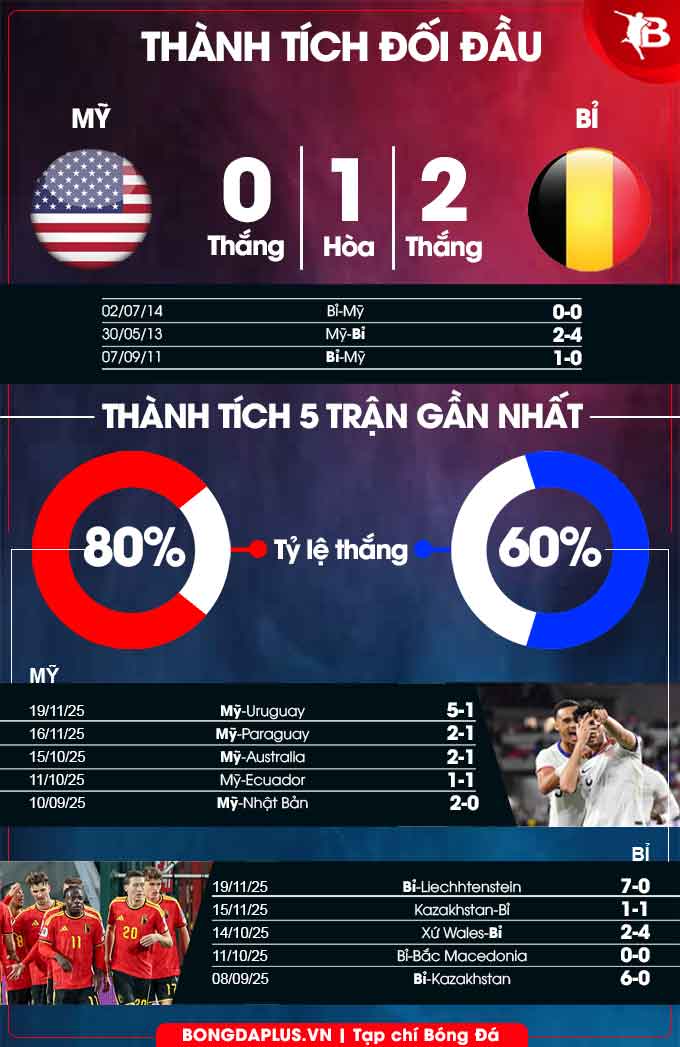 BONGDAPLUS dự đoán tỷ số trận Mỹ vs Bỉ