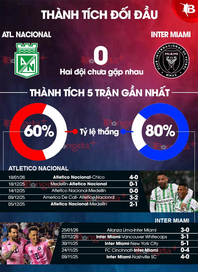Phong độ của Nacional vs Inter Miami không có sự chênh lệch vào lúc này. Trong khi Nacional thắng 3/4 trận gần nhất thì với Inter Miami là 4/5 trận vừa xong.